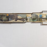 Joanna Zdzienicka-Obałek demonstrates the processes that are involved in the creation of her works. The artist has committed herself to recycling and upcycling. Therefore, she uses readily available materials, most of which have already had their past history, and she subjects them to transformation, giving them a chance to live further in a different form. The metaphorical breakdown, resulting from the artist’s deliberate act, has brought about a new beginning. The artist gives us a tour of her own microworld, which she has created under the influence of the advancing changes, to show us how to counter them at the personal and community level. For the purpose of this exhibition, all the materials have been purchased from a – currently closed down – pawnshop in Bytom. There are dufex prints, from which the artist has made a floral-themed collage, and a pair of skates, which she has converted into knives. Both items link to her favourite catastrophe movie from the 1990s. The floral-themed collage points to the direction that she advises us to follow. Yet, she has placed many obstacles on the way – she makes the viewers feel distressed on purpose, to make us realise that everything in this microworld results from purposeful transformation. When we witness this process, which has been guised as an exhibition, we can reflect on the state of our own ‘backyard’, explore complex issues and try to deal with the inevitable questions of whether this is the breakdown or the starting point.