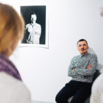 Grzegorz Frydryk, experiencing a difficult illness, seems to have found partial solace in the second series of works presented at the exhibition. The sequence of black and white photographic self-portraits is a courageous confession, or even an exposure of the effects of Parkinson’s disease. Beneath the bare, pale skin of his chest, the outline of a rectangular device can be seen. The implanted component is an electrical stimulator – a small device used in therapy for deep brain stimulation (DBS*) – directly connected to him. This begs the question: who am I now? ‘Am I already a cyborg or just an enhanced version of a human being?’ – asks the artist, who includes a panoramic X-ray of his own head in one of his prayer graphics. It was here that he first saw the effects of an operation to implant electrodes stimulating his brain. An exhibition ‘about constant prayer’ will probably not be an experience of beauty and harmony. But art ultimately also touches on those slices of reality that are difficult to accept and embrace. Nevertheless, it is a story about faith and hope, without which life would be unbearable.