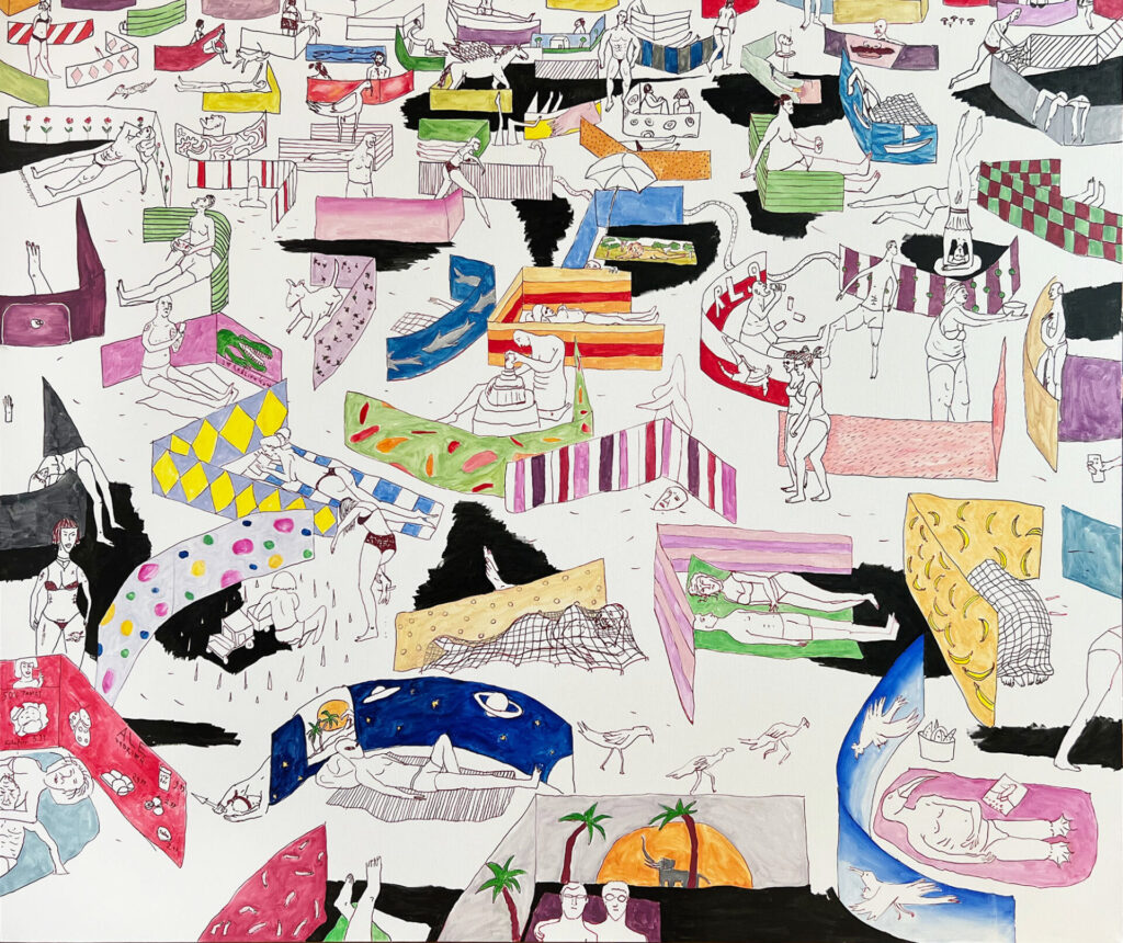 The mental vacationer comes to the sea not in search of adventure, but for a moment of retreat. They do not expect miracles – only a pause. They seek something between a reset and an escape, fully aware that the sea no longer belongs solely to contemplation. They know its modern face: loud, lined with ice cream and waffle stands, segmented by windbreaks, immersed in a festival of makeshift structures and seaside kitsch. They do not feel completely at home here, yet they do not resist. They exist – quietly on the edge. Their own towel, their own thought, a brief moment to breathe.
